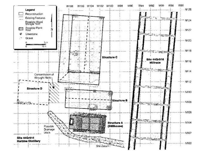 The Harbine Distillery was initially constructed during a time when distilling was an accepted and honored profession. Grist and saw-milling, hog raising, and pork packing were ancillary industrial concerns that made efficient use of the infrastructure and byproducts of the distilling process. Temperance and the development of a widespread and functional railroad system precipitated the decline of this industrial system by the mid-1800s. The crushing blows to rural distilling occurred during the Civil War, when federal excise taxes soared from nothing to $2.00 per proof gallon on whiskey and other distilled spirits. By 1868, when the excise taxes were finally reduced, most of the rural whiskey making ventures had either suspended production or simply ceased. The advent, operation, and demise of the Harbine Distillery parallels the once widespread rural practice of whiskey distilling, an extinct and largely forgotten feature of the American landscape.