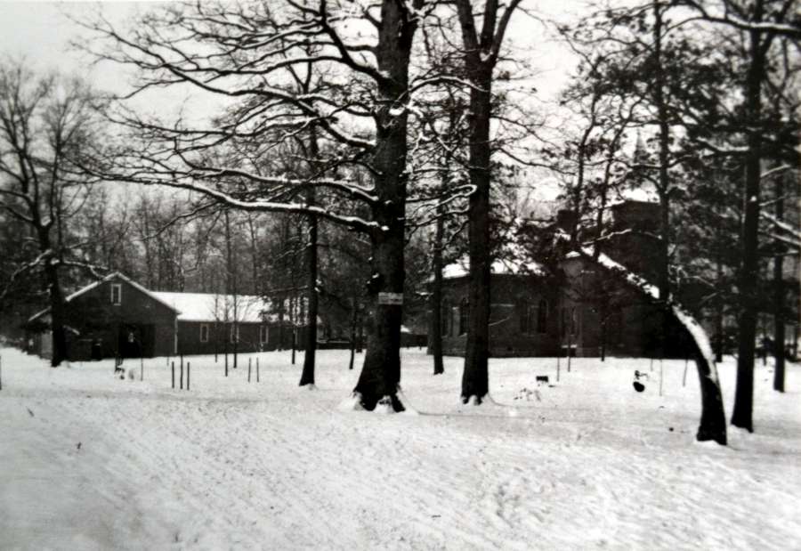 Just to the southeast of the school, pictured below c.1930, is the vocational and agricultural classroom which also served as a horse barn and farrier shop.