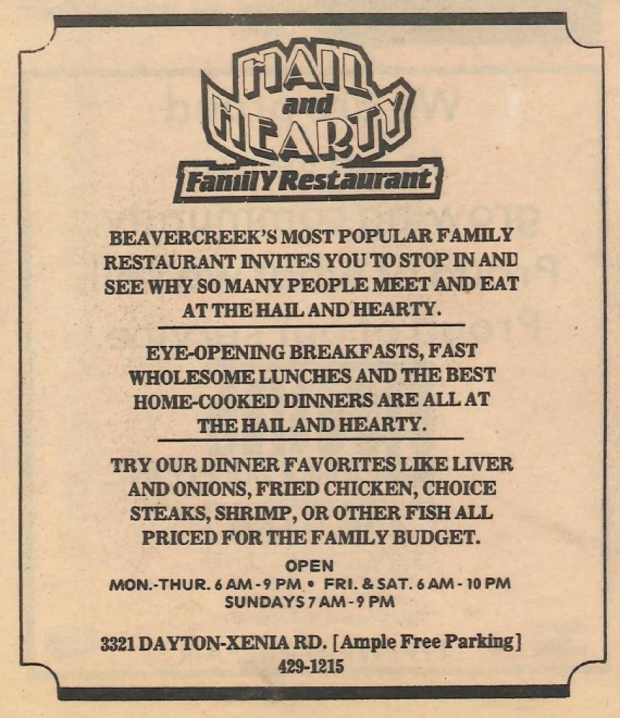 Ahead on the right was the Hail & Hearty restaurant, which started as a Hasty Tasty, Char-Burger, The Shamrock, then Mama Bear's, and later Debra Lee’s, Naomi's, Grandpa's Cafe and most recently Woody’s Barbeque. The building was demolished in 2016 to make way for an automotive repair shop and strip center.