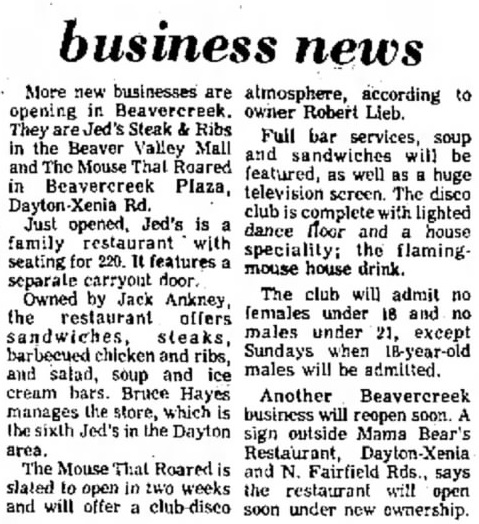 On the east side of the downhill grade is Meadowbridge Drive. Beaver-Vu bowling alley has been a long-time favorite of Beavercreek residents - especially in the 1970's when a billiard room was constructed. Original owner Cy Grilliot was an intimidating character who would stare down patrons at the desk until they mustered the courage to ask for his assistance. His saltiness may have come from customers enjoying too many libations and then rolling bowling balls down North Fairfield Road - names withheld to protect the accused!