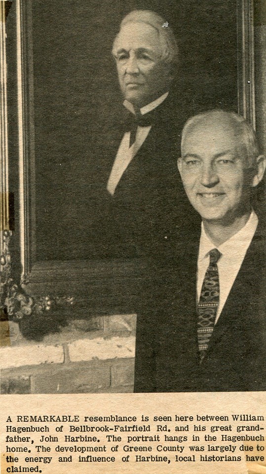 When you reach the stop sign at Factory Road, you are facing the location of The Harbine Industrial Complex. Please turn north and pull into the RV and boat storage parking lot. In 1828 John Harbine (also spelled Harbein) and his new bride, Hettie Herr, traveled by wagon from Maryland to Beavercreek Township with what money they had nailed under the axle for safe keeping from highway robbery. He purchased the 180 acre farm of Owen Davis, the first settler of Greene County. As a business entrepreneur, John began constructing his mill complex during the same period as he built his residence. The grist mill, saw mill and distillery [the core of the Harbine Industrial Complex] were operating on Beaver Creek by 1832.