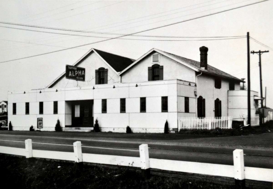Next door to the Lone Pine was a supper club that was popular with local couples. In the mid-late 1940's it was a member's only establishment known as the Midnight Sun that allegedly offered some less-than-legal casino gaming. Stories have been shared that once or twice a year the Midnight Sun would be visited by the county law for an 'off-the-books' tax collection. In the 1950's it was open to the public as the Alpha Supper Club.