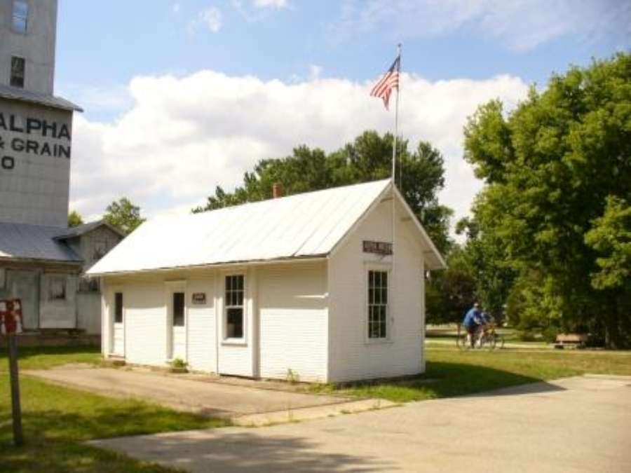 The weigh station for the Alpha Seed & Grain Elevator is now the Alpha Museum. A recent roof leak precipitated the moving of all items to the basement of the Alpha Church - the roof has since been repaired and the archives are now in both locations.