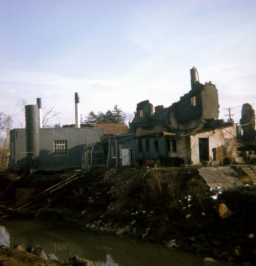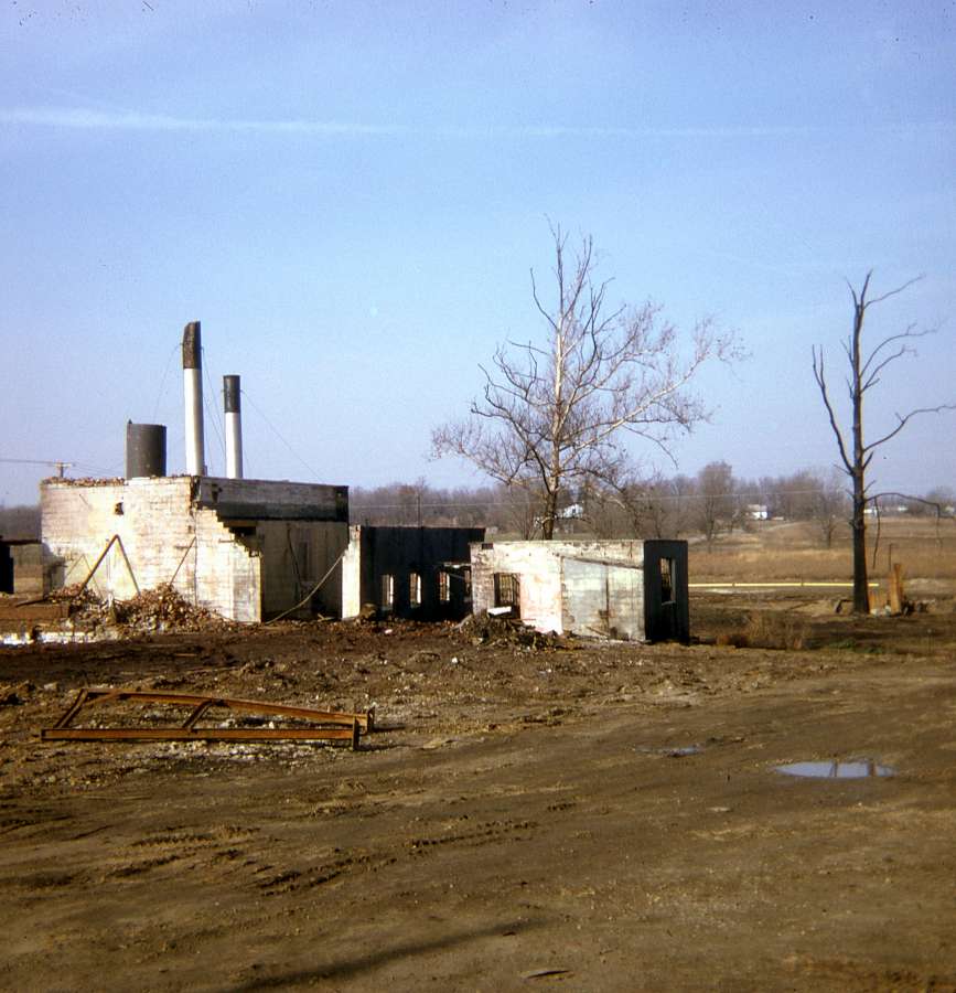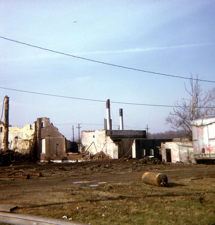 At the four-way stop sign we have three points of interest; the northeast corner is the former site of the Lammer’s Chemical Company (The Barrel Factory) that exploded on September 30, 1969. The primary function of the company, as explained, was to chemically and mechanically clean 55 gallon barrels for re-use.