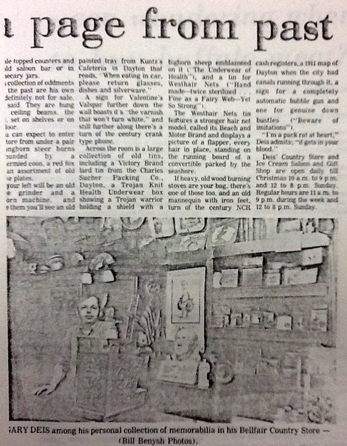 At the southeast corner of North Fairfield Road and Lantz Road stood the Bellfair Country Store, which survived as a nostalgic destination until the late 1990’s! From the early days it was a great place for penny candy, ice cream and an ‘old time’ soda or phosphate!