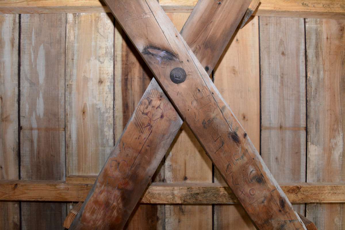 The restorers were careful to maintain as much of the original structure as possible, while augmenting it with components to ensure it's survival for decades to come. Hidden amongst the original carvings of young love, 'John was here' and a bevy of initials are new timber, sistered joists and steel supports to weather the elements.